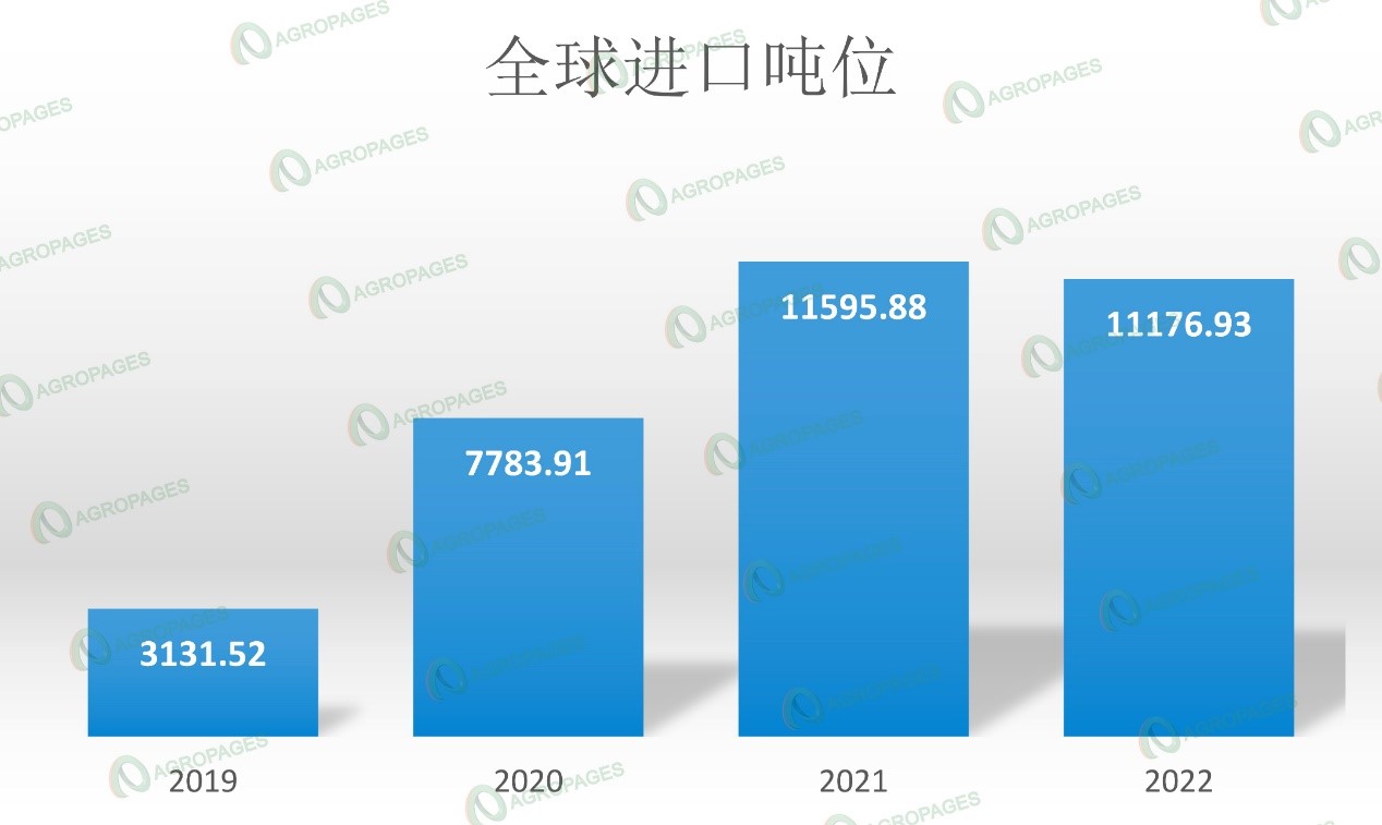 據(jù)不完全統(tǒng)計(jì),2019年全球各國(guó)進(jìn)口單氰胺僅為3131.5噸,到2021年達(dá)到了11595.8噸,年均增長(zhǎng)率達(dá)到98%。而2022年1-10月已經(jīng)達(dá)到去年全年水平,各國(guó)都在進(jìn)一步增加進(jìn)口。據(jù)了解該含量的單氰胺主要應(yīng)用在植物破眠領(lǐng)域,且已經(jīng)在破眠領(lǐng)域成為一款主打產(chǎn)品同時(shí)市場(chǎng)也比較穩(wěn)定(排除未來(lái)的禁限用風(fēng)險(xiǎn))。