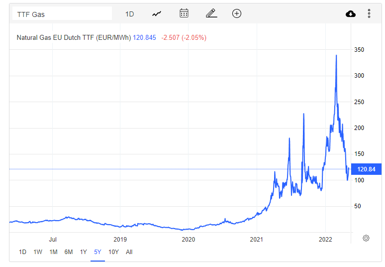 一噸單氰胺(50%含量)需要1.65噸石灰氮 300度電,1噸石灰氮需要0.8噸電石,1噸電石需要3000度電,因此一噸單氰胺的生產(chǎn)成本會(huì)嚴(yán)重受到電石成本的影響。截至發(fā)稿時(shí),與歐洲天然氣批發(fā)價(jià)格TTF掛鉤的天然氣期貨價(jià)格約為每兆瓦時(shí)120歐元,接近10月觸及的五個(gè)月低點(diǎn),不到夏季峰值339歐元的三分之一,但仍然是2021年 10月份每兆瓦時(shí)65美元的兩倍。就以120歐元一兆瓦時(shí)來(lái)計(jì)算,相當(dāng)于8.64元RMB/立方米(中國(guó)工業(yè)用氣2塊多),天然氣熱值為8400Cal/m3,按照85%燃燒效率計(jì)算,每立方米天然氣大概可以發(fā)電3.321度,一度電天然氣成本2.6元(中國(guó)工業(yè)用電0.5元/kwh)。一噸電石,歐洲生產(chǎn)僅電力成本要比中國(guó)高出6300元,一噸單氰胺比中國(guó)的生產(chǎn)成本也要高出7000元以上。這對(duì)于一款售價(jià)僅為3800USD/噸(50%水溶液)的品種來(lái)說(shuō),成本增加40%對(duì)其穩(wěn)定生產(chǎn)和供應(yīng)是非常不利的。也許該產(chǎn)品在德國(guó)有減產(chǎn)甚至停產(chǎn)風(fēng)險(xiǎn)。
